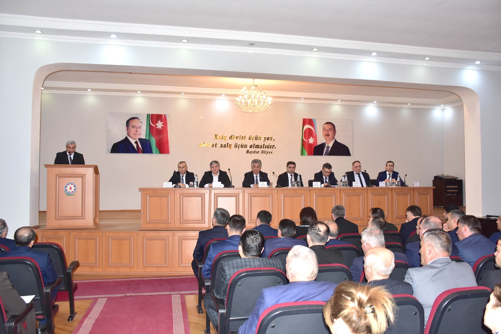 Hesabat yığıncağında çıxış edən Azərbaycan Respublikası Prezidenti Administrasiyasının Ərazi-təşkilat məsələləri şöbəsinin 9-cu ərazi sektorunun müdiri İlqar Süleymanov, Milli Məclisin deputatı Əli Məsimli ,Qax Dövlət Aqrar İnkişaf Mərkəzinin direktoru Məmməd Fətəliyev, Azərbaycan Dövlət Turizm Agentliyinin Şəki Regional Turizm İdarəsinin rəisi Şahin Məlikov, şəhid atası Rafiq Hacıyev ötən il Prezident İlham Əliyevin rəhbərliyi ilə ölkəmizdə daxili və xarici siyasət sahəsində əldə olunmuş uğurlardan, həyata keçirilən genişmiqyaslı quruculuq işlərindən, əhalinin sosial rifah halının yüksəldilməsinə yönəlmiş tədbirlərdən söz açmış, Qax rayonunda ayrı-ayrı sahələrdə görülmüş işlərdən danışıblar.