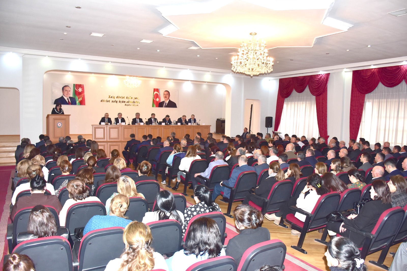 Hesabat tədbirini giriş nitqi ilə açan Rayon İcra Hakimiyyətinin başçısı Elvin Paşayev Azərbaycanın qazandığı tarixi qələbələr və dövlətimizin sarsılmaz qüdrəti Ümummilli Lider Heydər Əliyevin uzaqgörən siyasətinin və cənab Prezident İlham Əliyevin bu yolu böyük məharətlə davam etdirməsinin parlaq nəticəsi olduğunu diqqətə çatdırıb. Eyni zamanda ölkə rəhbəri Prezident İlham Əliyevin fəaliyyəti dövründə ölkəmizdə mövcud ictimai-siyasi sabitlik Azərbaycanın sosial-iqtisadi inkişafına, insanların rifah halının yaxşılaşmasına, hüquq və azadlıqlarının daha dolğun təmin olunmasına, əhalinin təhlükəsizliyinə, beynəlxalq aləmdə qazanılan uğurlara əsas yaratmışdır.